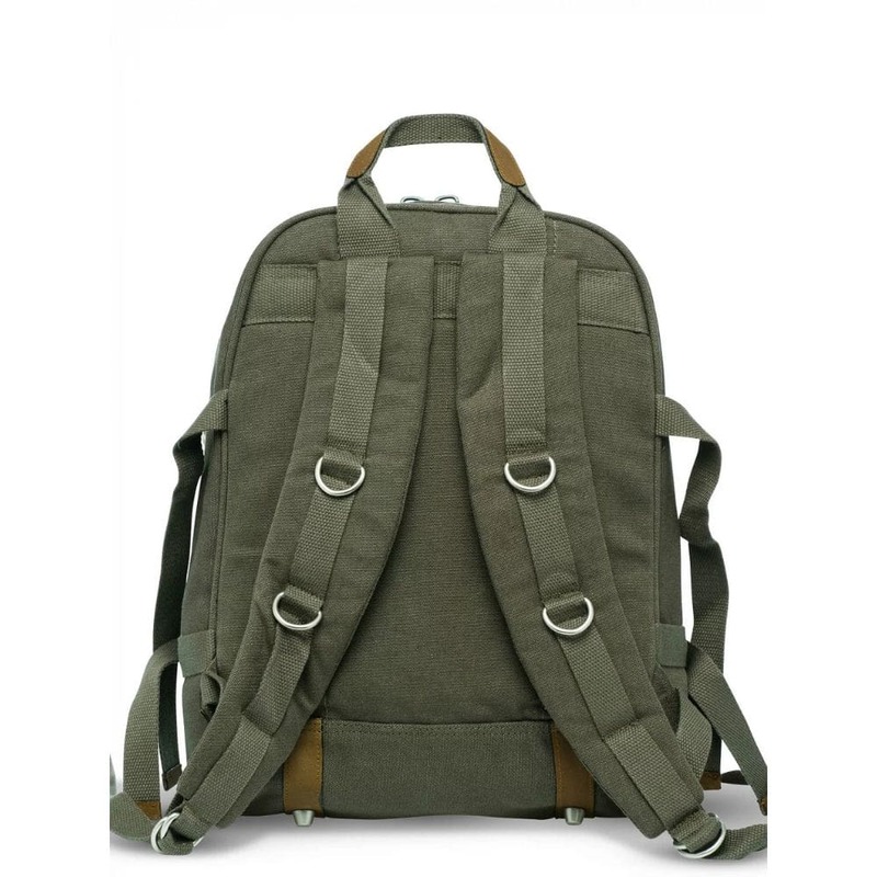 Lo zaino รจ composto di fibre di canapa, cotone e pellame conciato senza prodotti chimici inquinanti. L’impiego della canapa assicura una grande resistenza agli strappi.