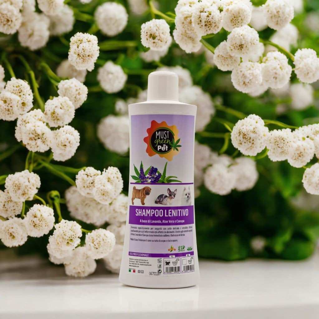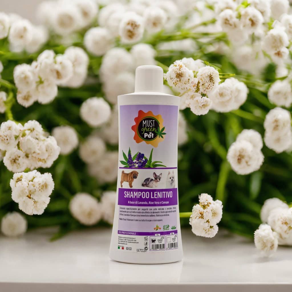 Must Green Pet – Shampoo Lenitivo: Ideale per cani con pelle delicata e sensibile. Questo shampoo professionale, arricchito con olio di canapa sativa, รจ un eccellente coadiuvante per cuti infiammate o affette da dermatiti. La sua formula delicata e naturale assicura una pulizia profonda senza irritare.